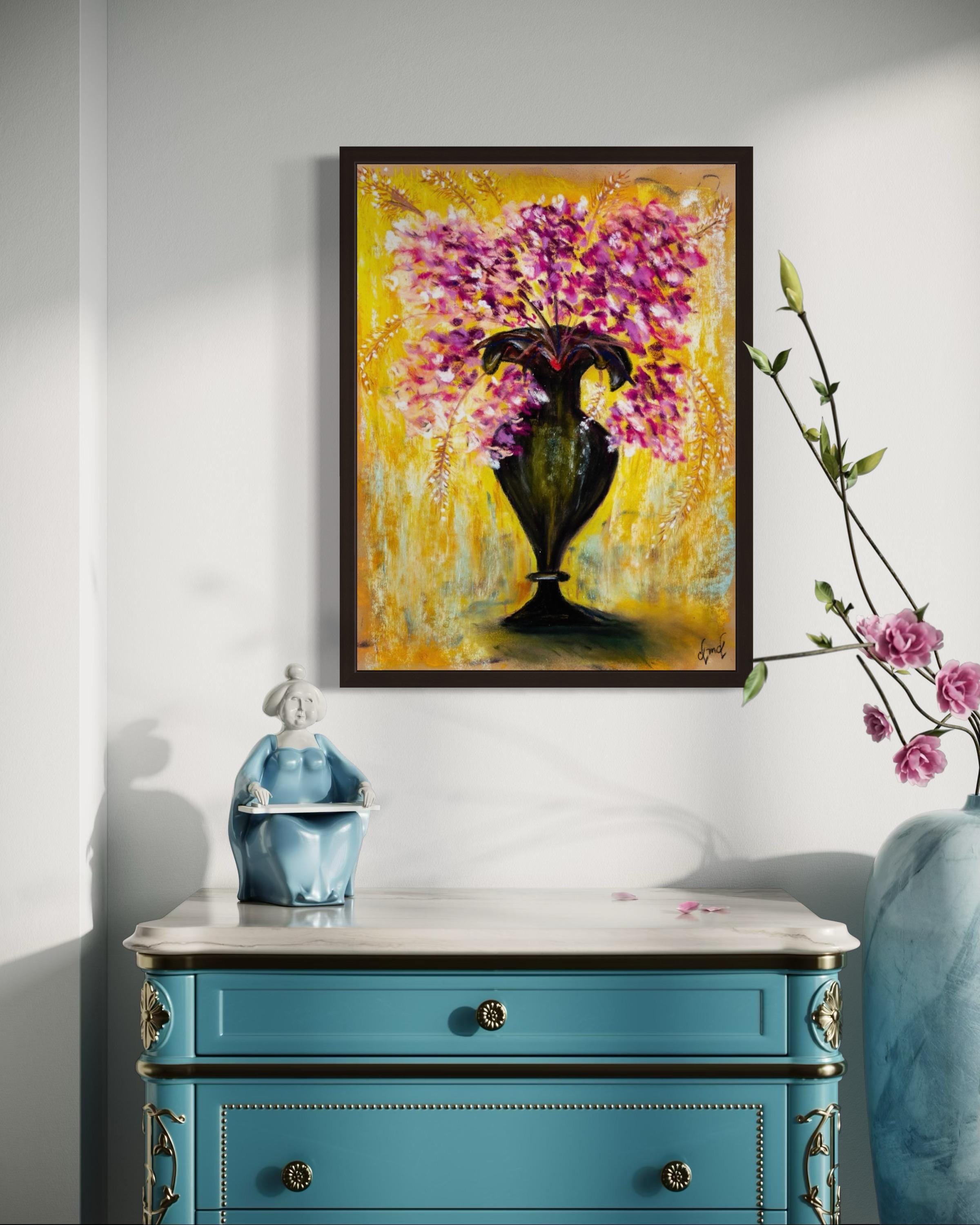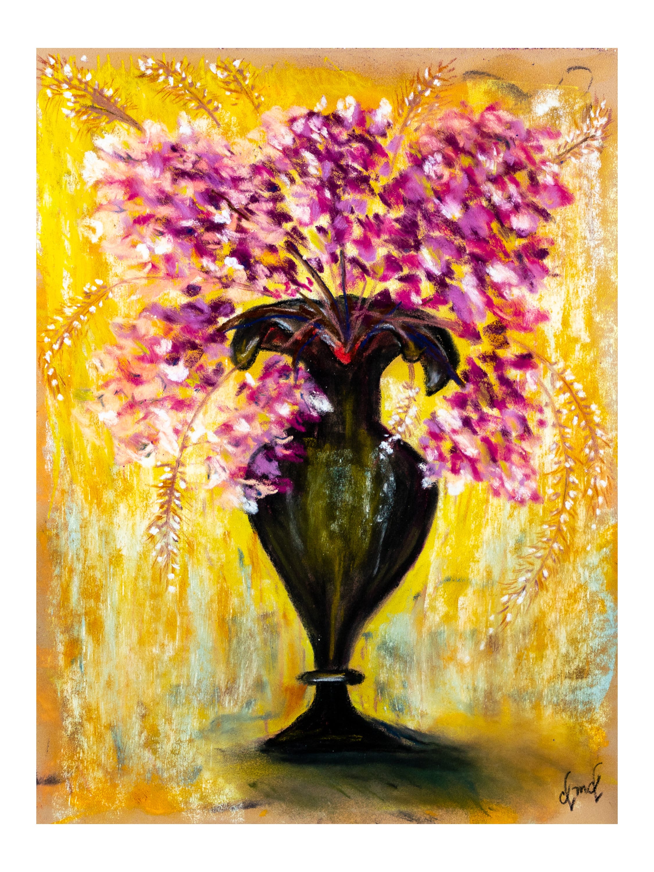 “Black Dress” is a first edition luxury print of an original soft pastel painting by Dernea Michaux-Davis. vibrant. abstract. lively.