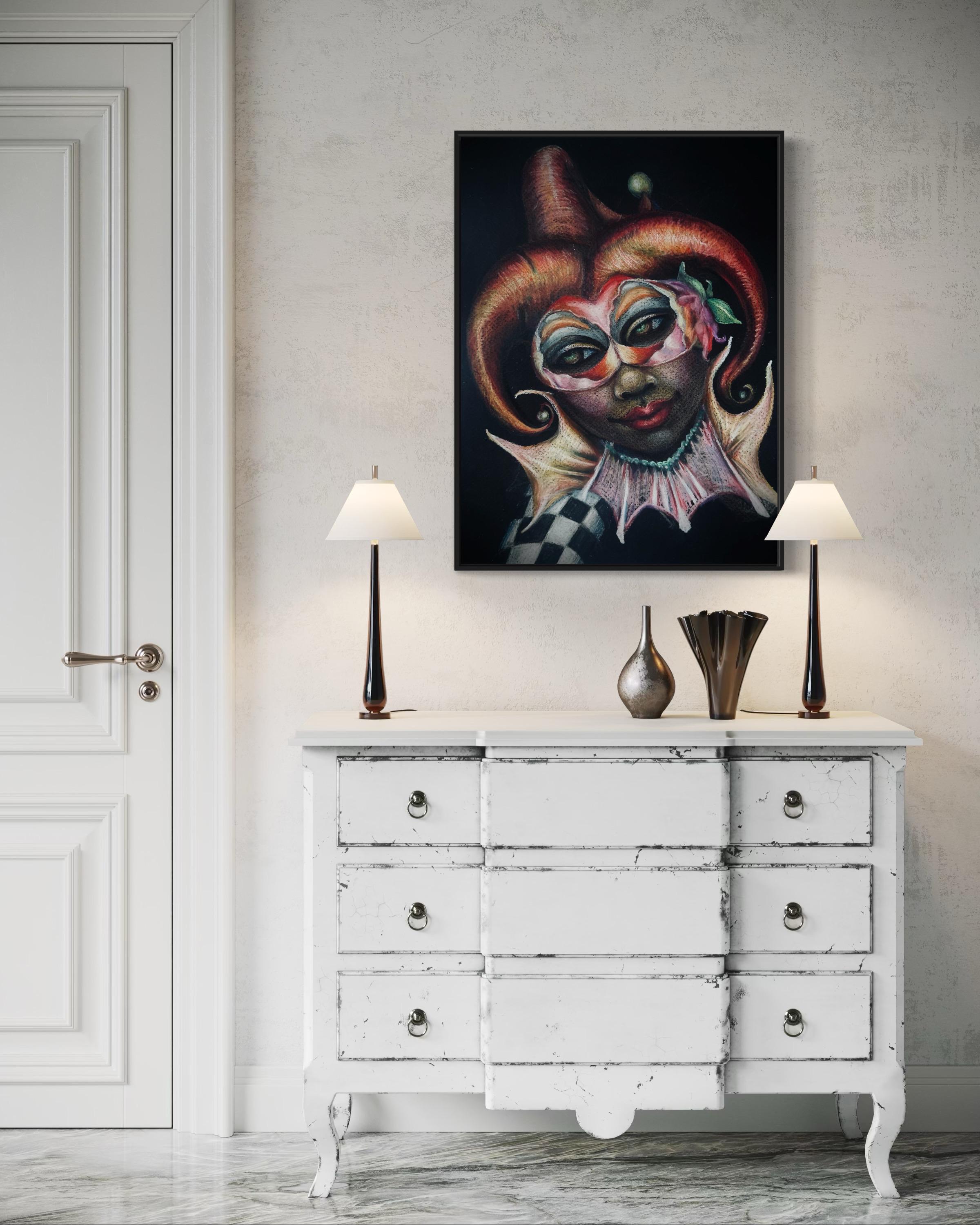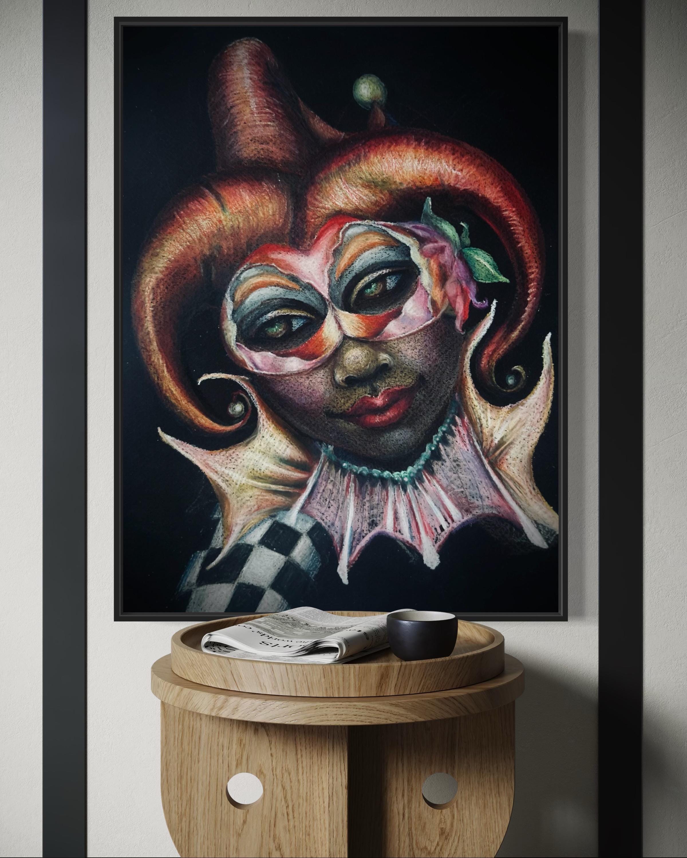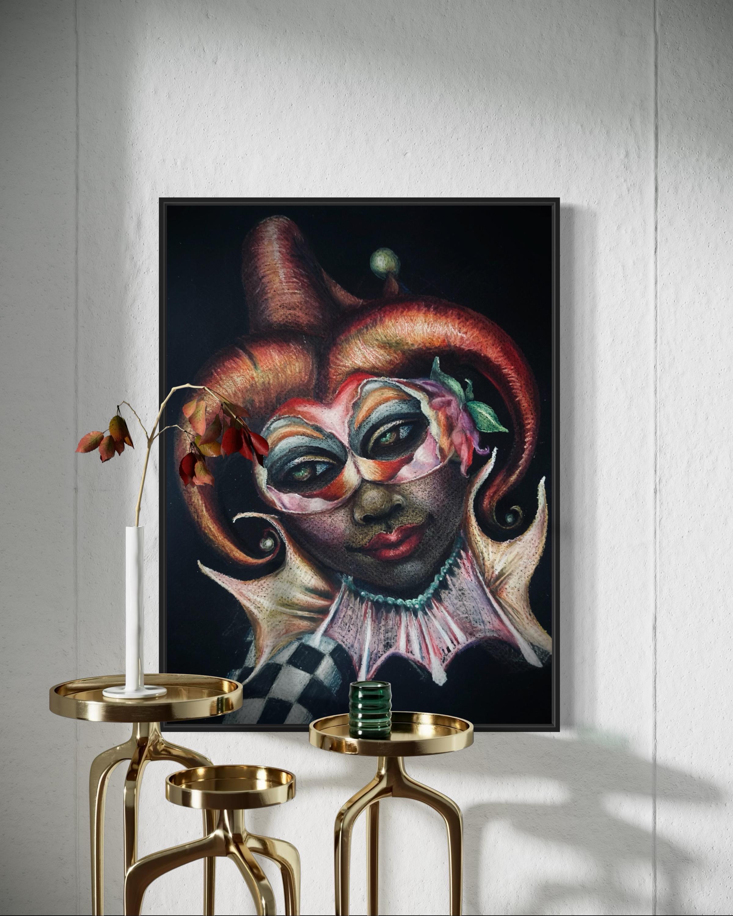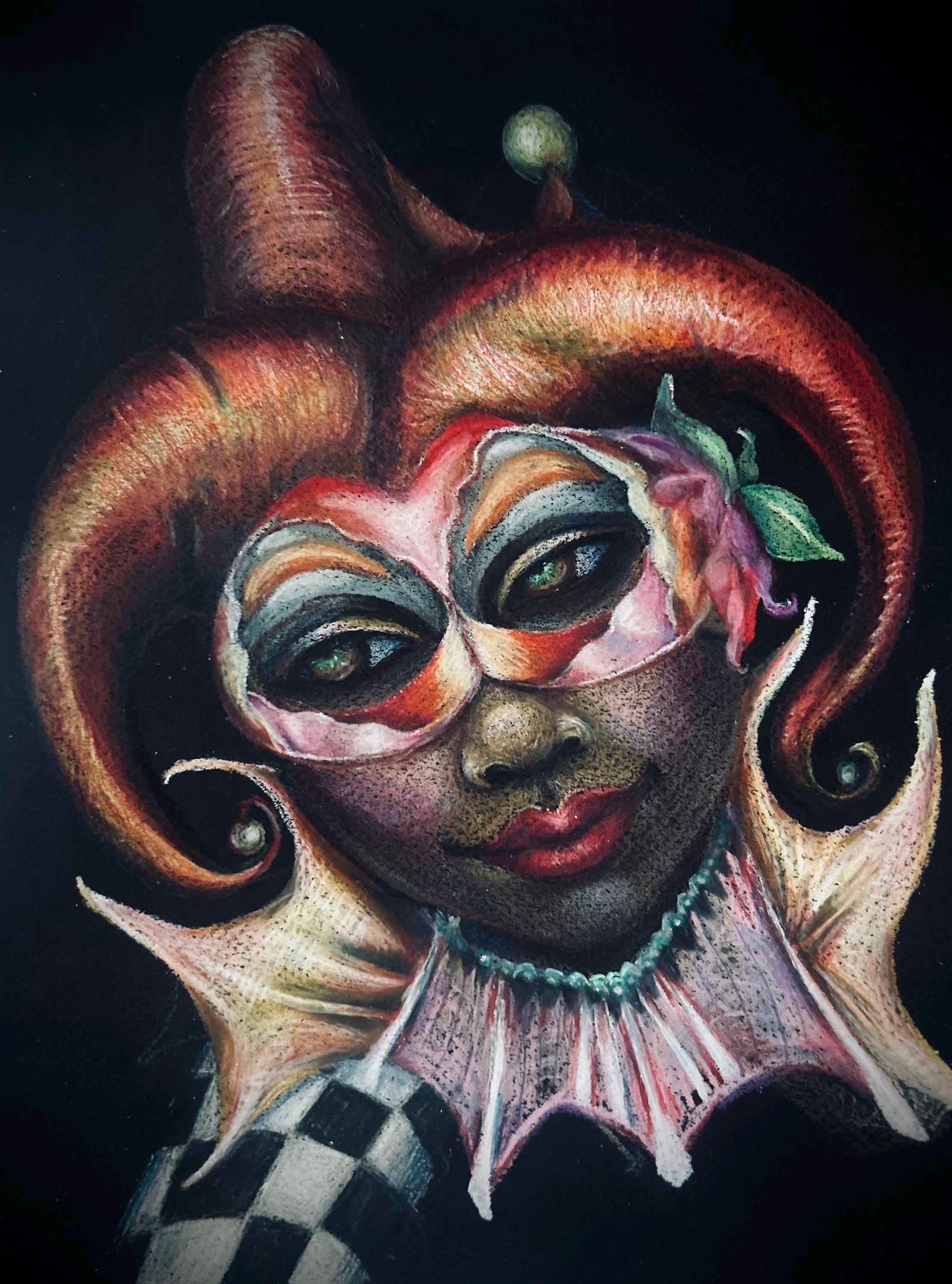 "Masquerade" is a luxury print of an original colored pencil drawing by Dernea Michaux-Davis.