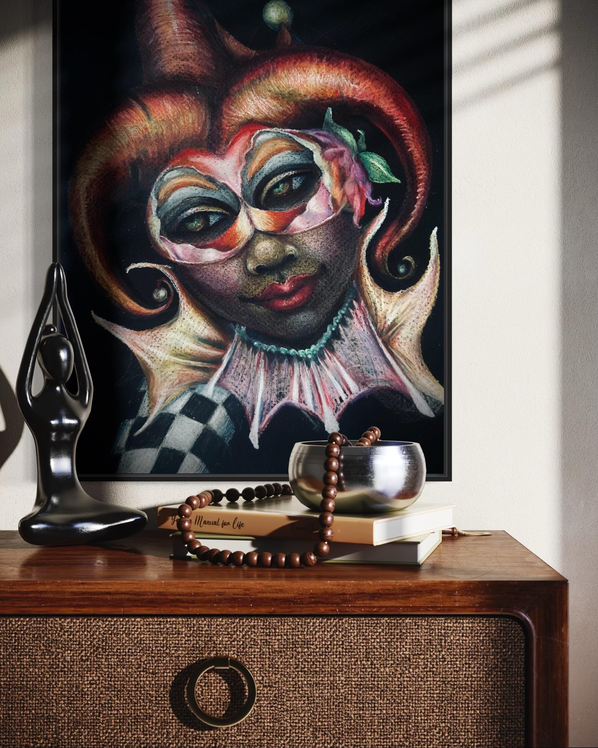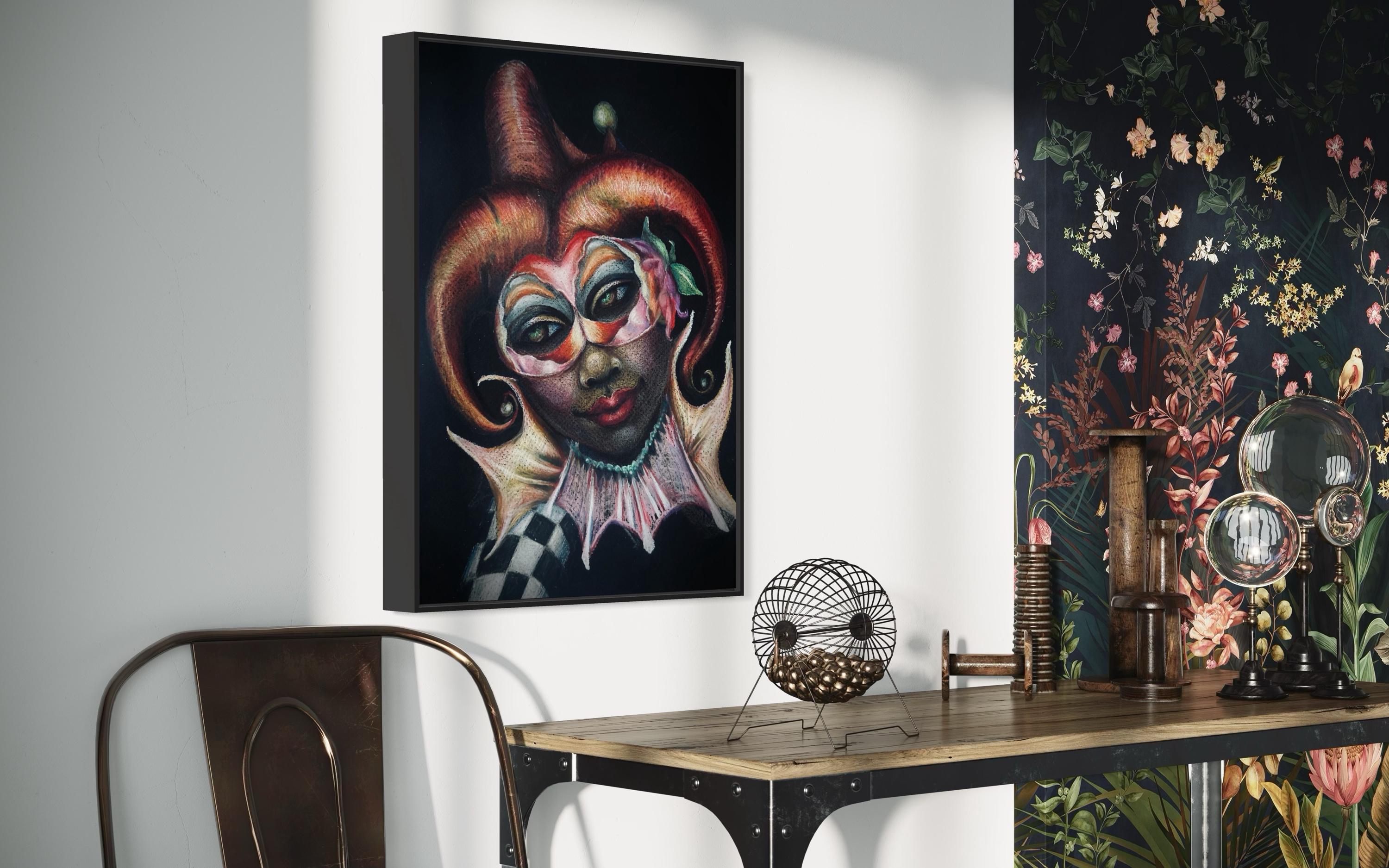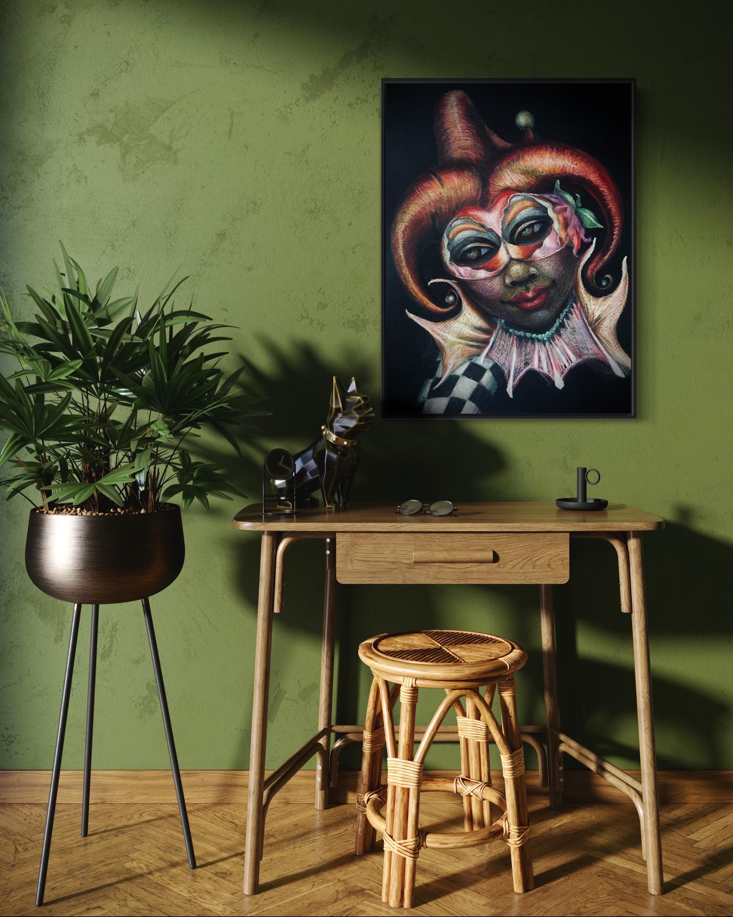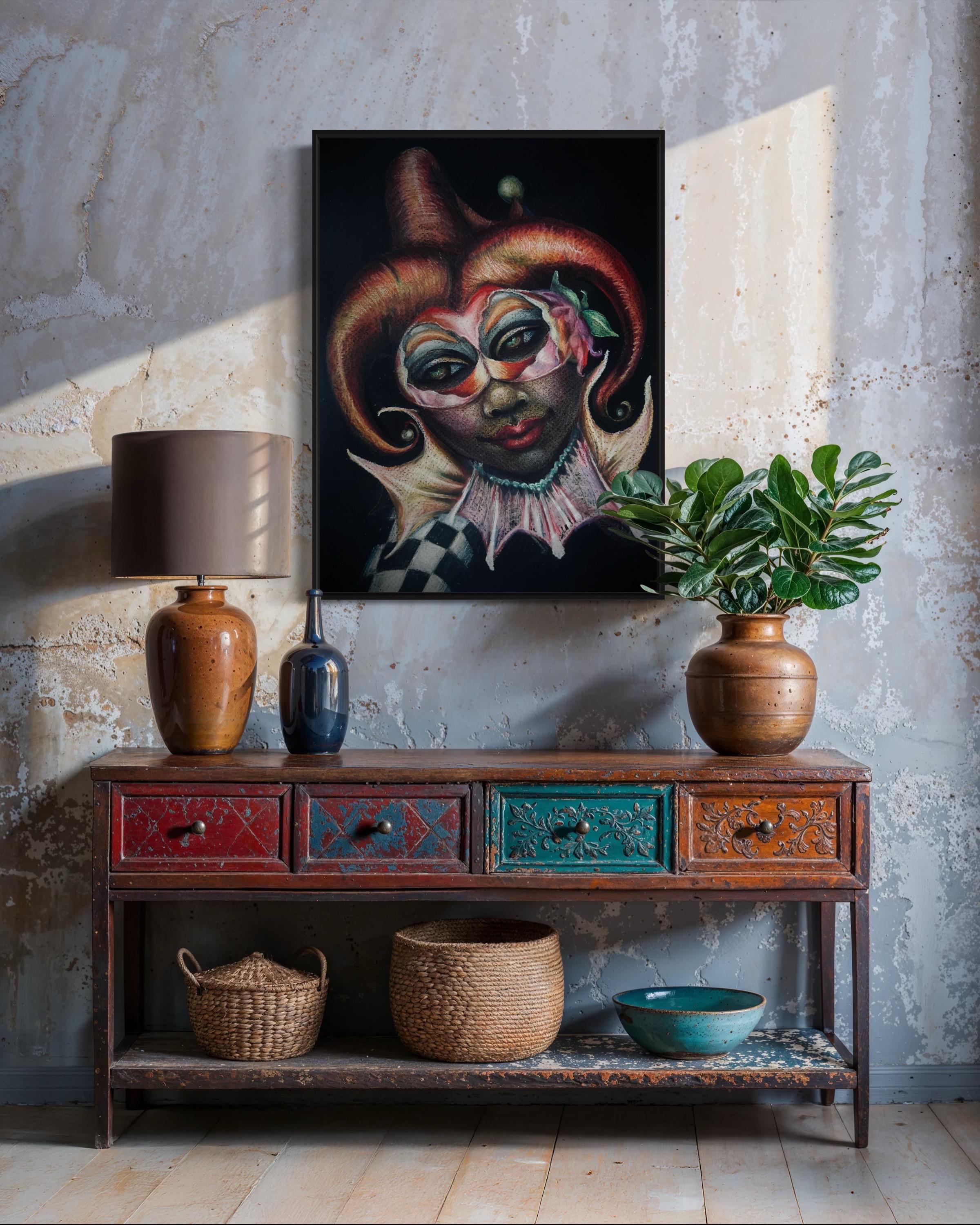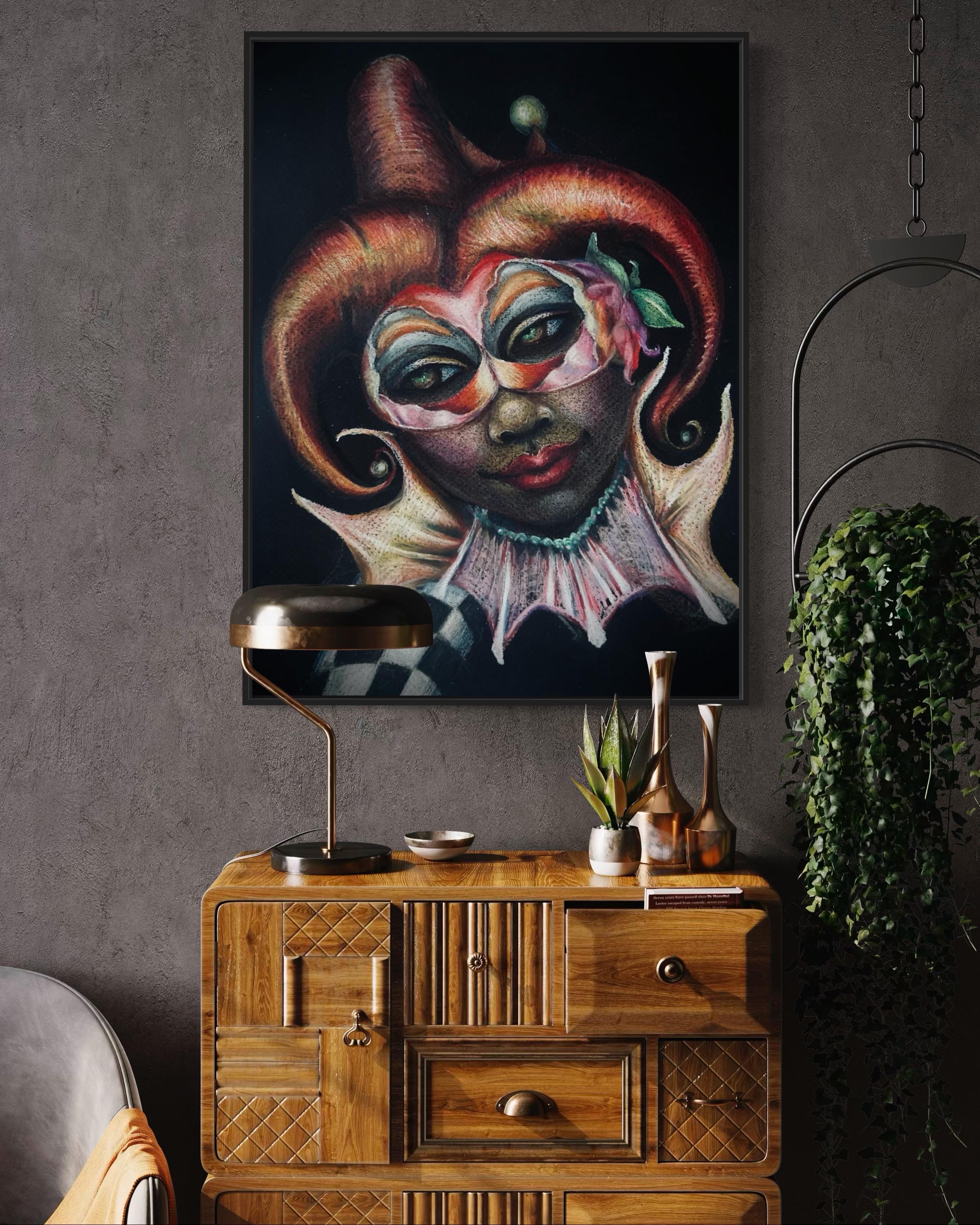 "Masquerade" is a luxury print of an original colored pencil drawing by Dernea Michaux-Davis.