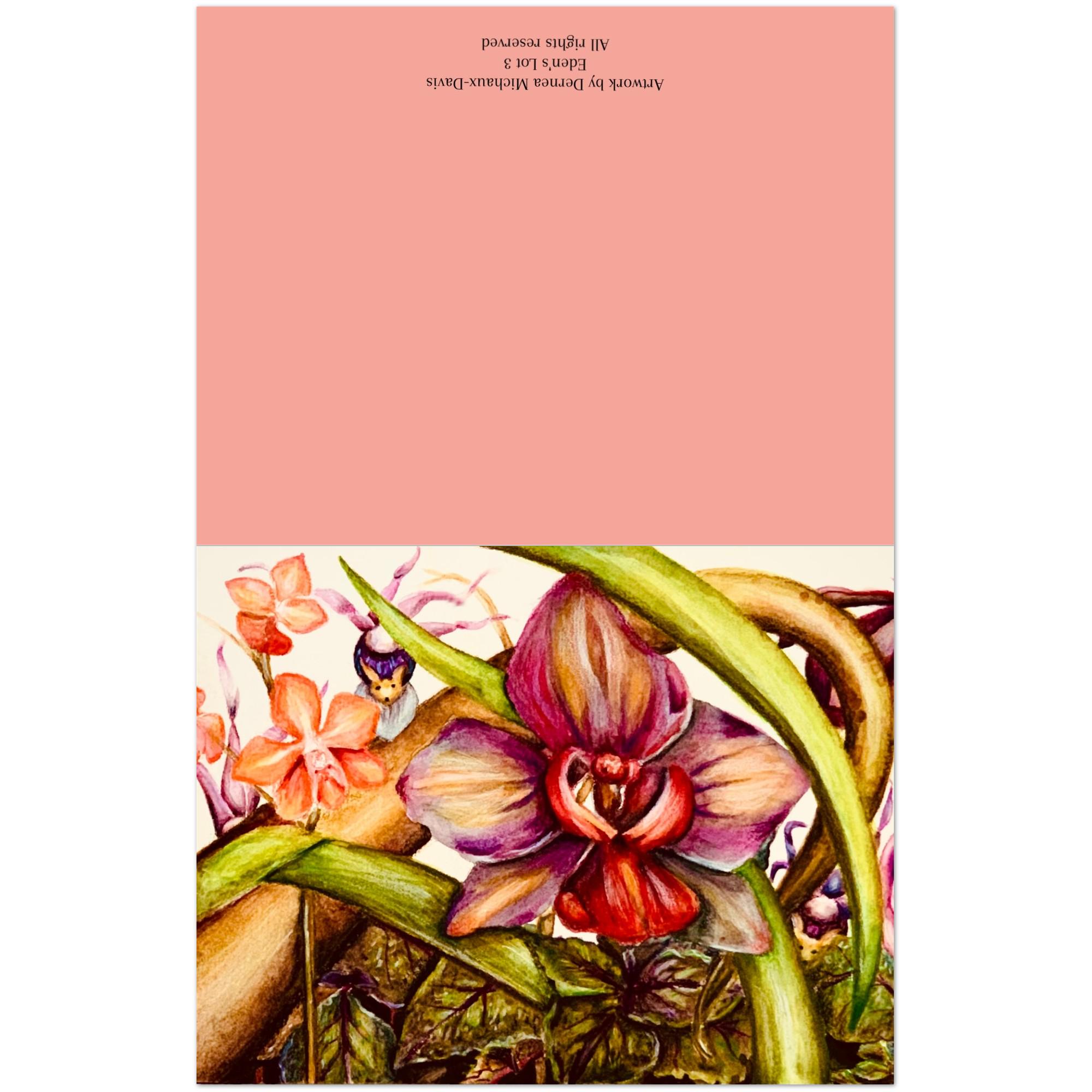 Add glamour to your correspondence with a pack of 10 beautiful greeting cards with envelopes. These cards feature an original gouache painting by Dernea Michaux-Davis. The notecards are printed on matte, 300 GSM paper, and measure 4.25 x 5.5 inches folded. They make perfect thank you cards, invitations or a lovely letter to someone special.